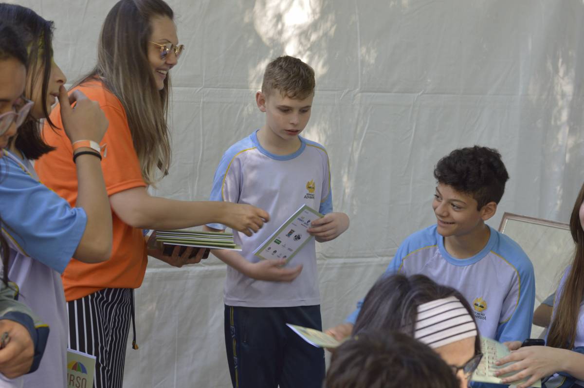 Além de realizar a cobertura dos eventos, na última sexta-feira, 8 de novembro, a equipe da Rádio Unijuí também participou com uma ação de distribuição do livro contendo os contos vencedores do Concurso Literário “Folclore brasileiro e o nosso meio ambiente”, realizado com estudantes do 6º ao 9º de escolas de Ijuí e região. As redações também foram transformadas em radionovelas, que podem ser conferidas aqui.