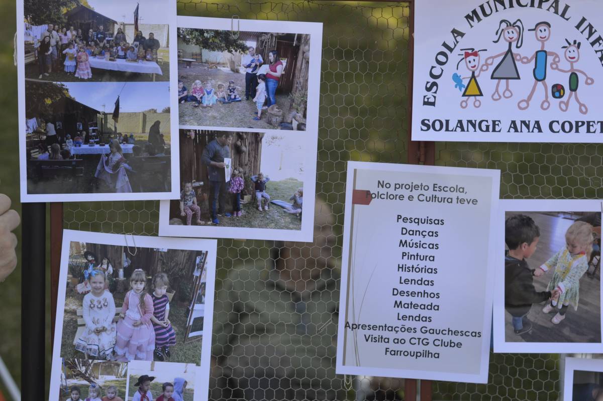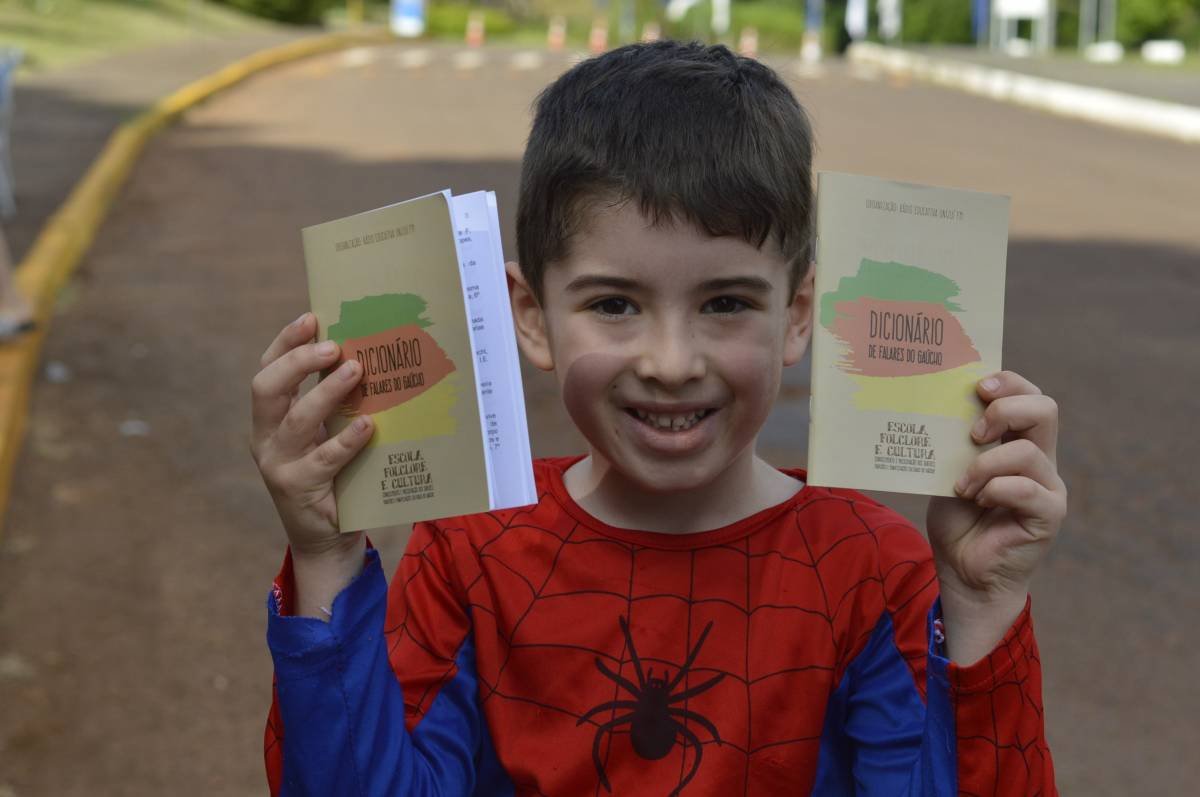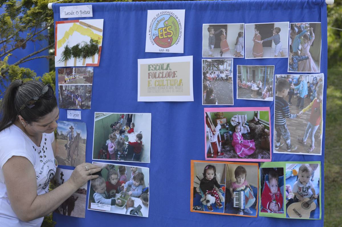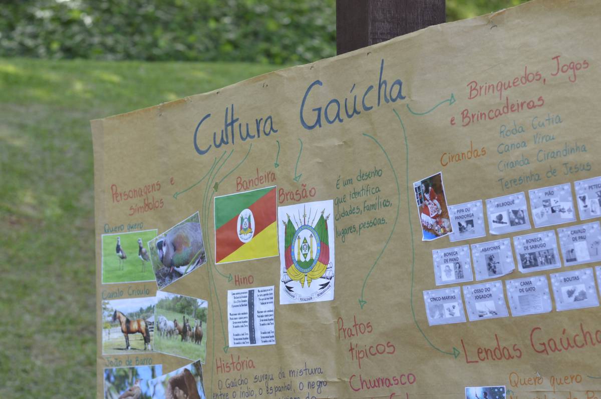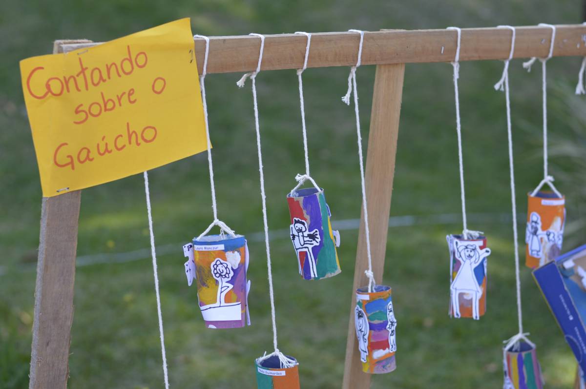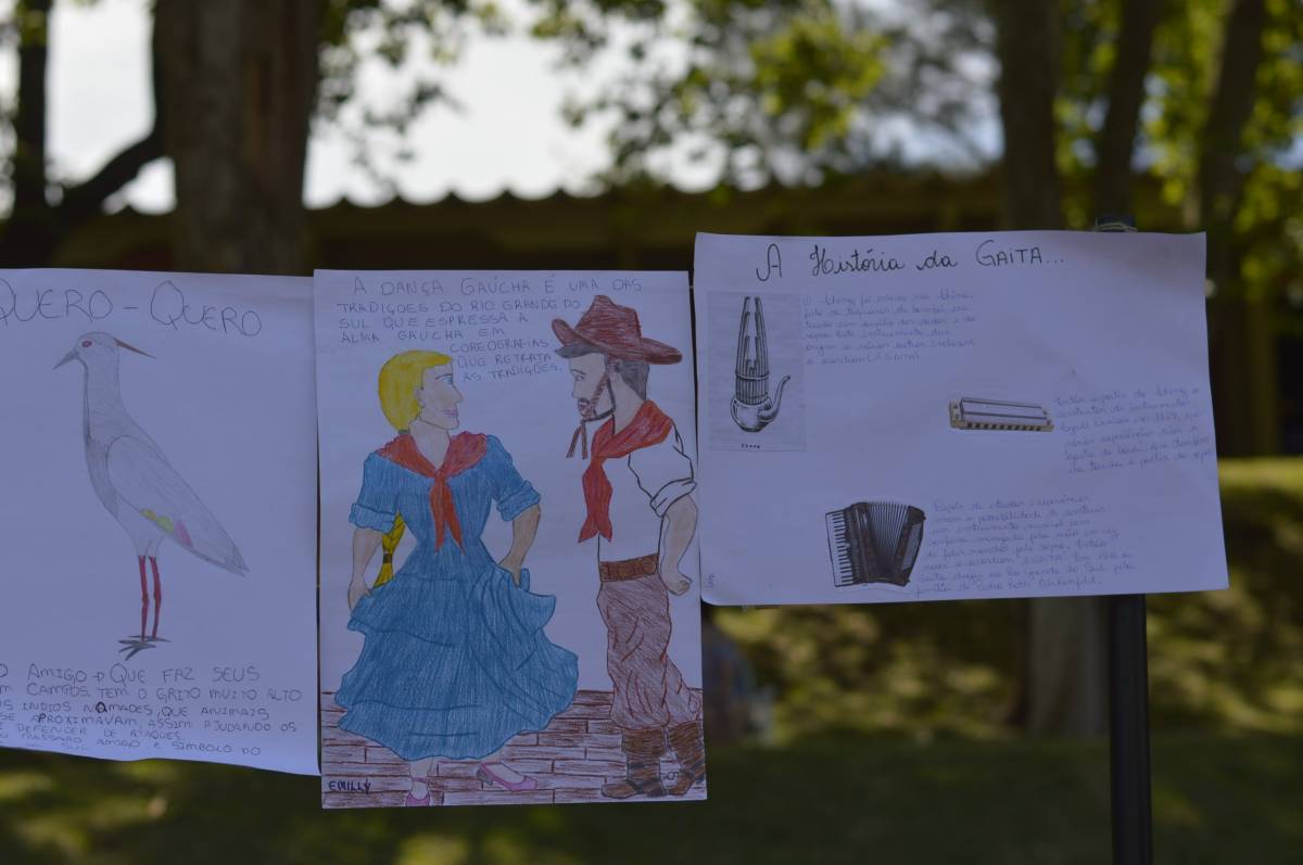 O domingo também foi importante para alunos, professores e familiares envolvidos no projeto, com a socialização das pesquisas e troca de conhecimentos sobre folclore e cultura gaúcha. Nesse sentido, houve mostra de trabalhos da Educação Infantil, com ilustrações, artes plásticas e instalações; cabine radiofônica à disposição dos Anos Iniciais; e ainda, distribuição gratuita do Dicionário de Falares do Gaúcho, produção coletiva dos Anos Finais do Ensino Fundamental, com vocábulos e expressões idiomáticas gaúchas.
