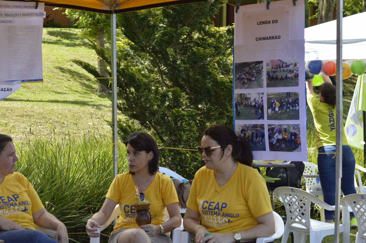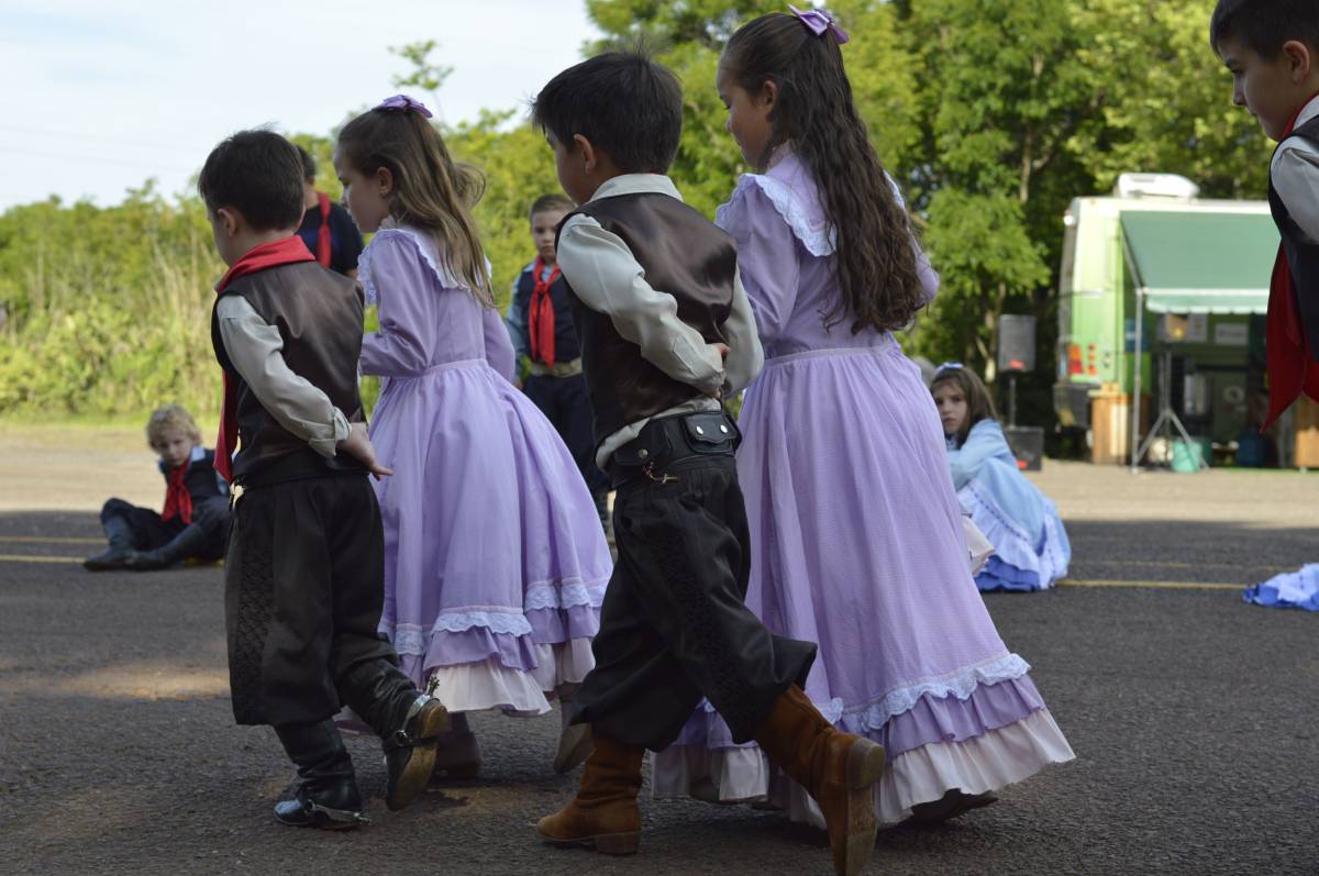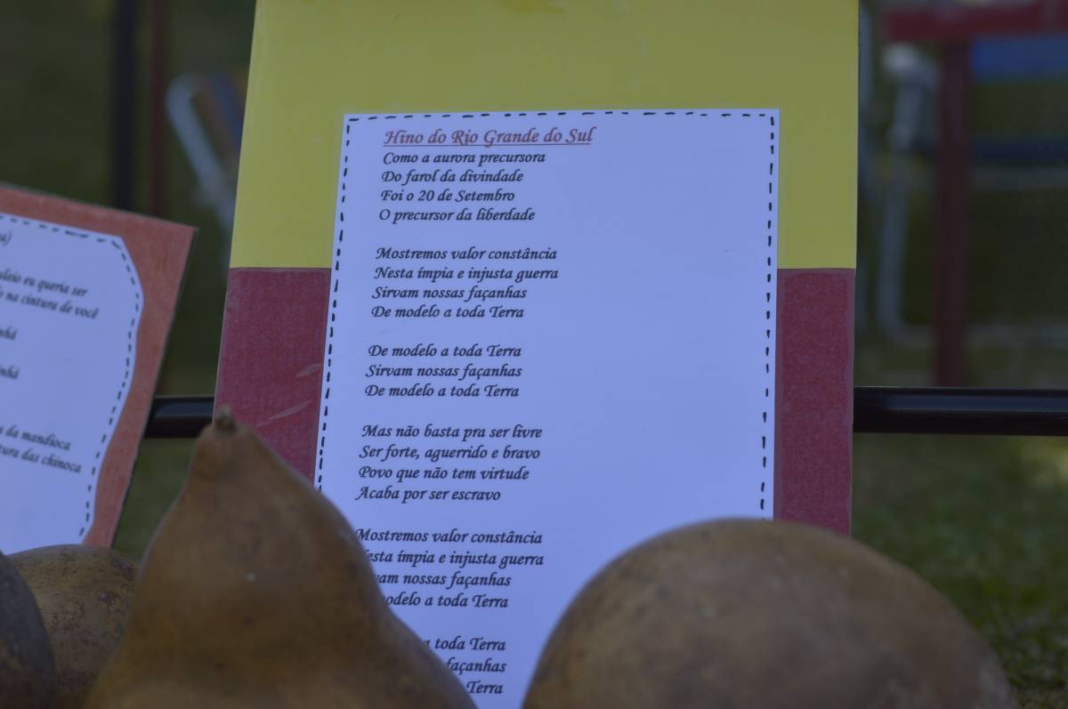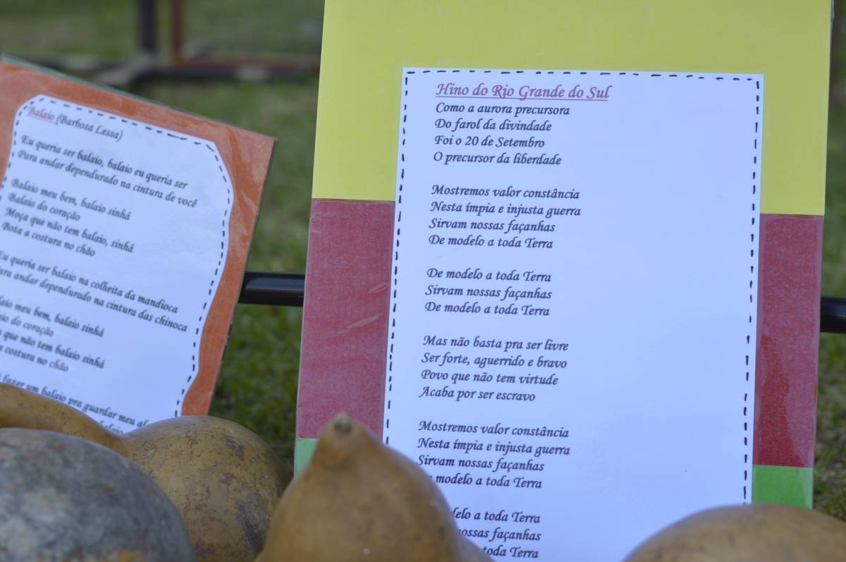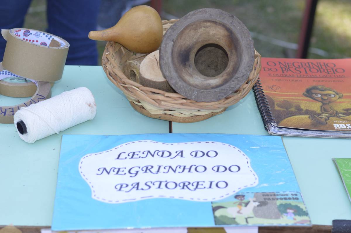 O domingo também foi importante para alunos, professores e familiares envolvidos no projeto, com a socialização das pesquisas e troca de conhecimentos sobre folclore e cultura gaúcha. Nesse sentido, houve mostra de trabalhos da Educação Infantil, com ilustrações, artes plásticas e instalações; cabine radiofônica à disposição dos Anos Iniciais; e ainda, distribuição gratuita do Dicionário de Falares do Gaúcho, produção coletiva dos Anos Finais do Ensino Fundamental, com vocábulos e expressões idiomáticas gaúchas.