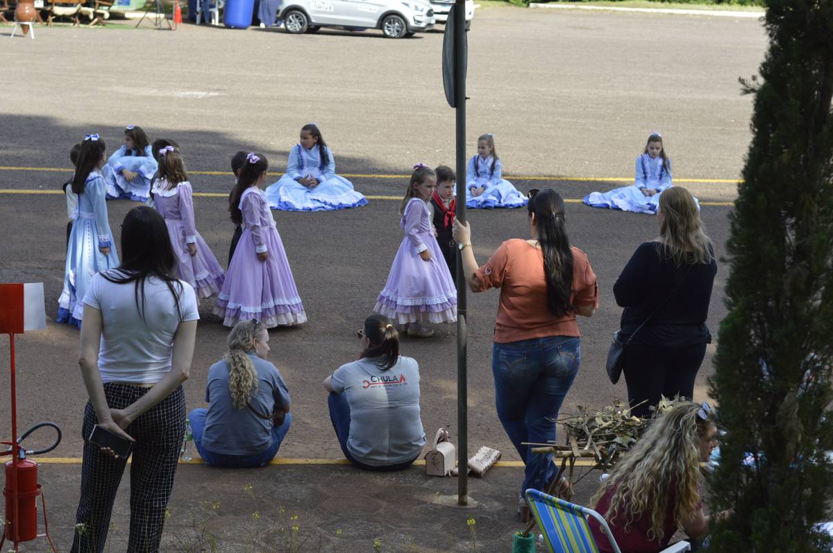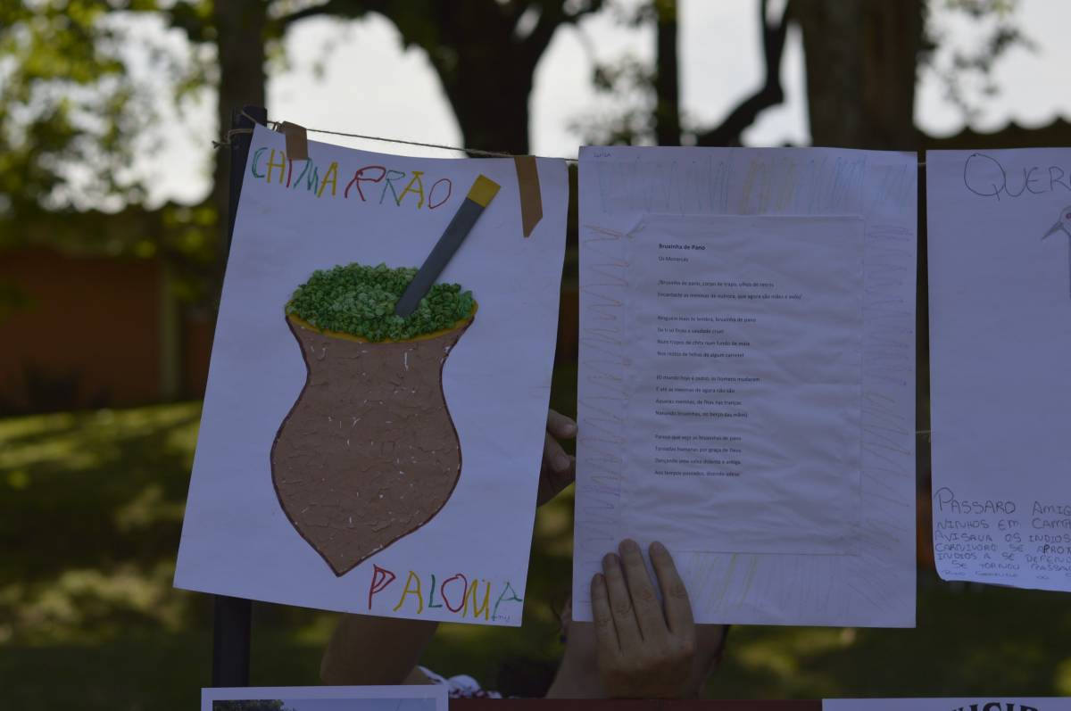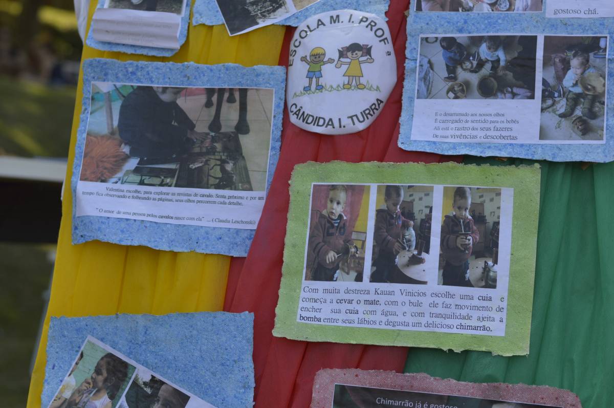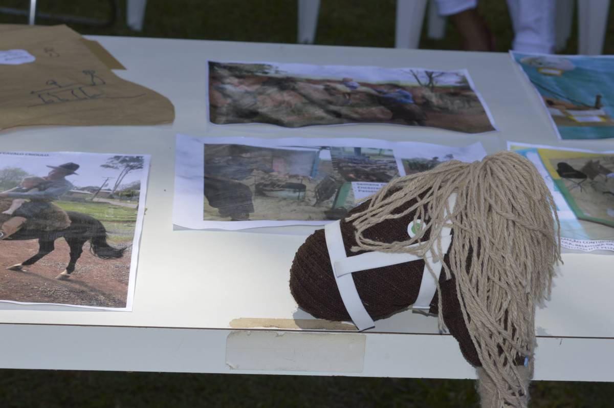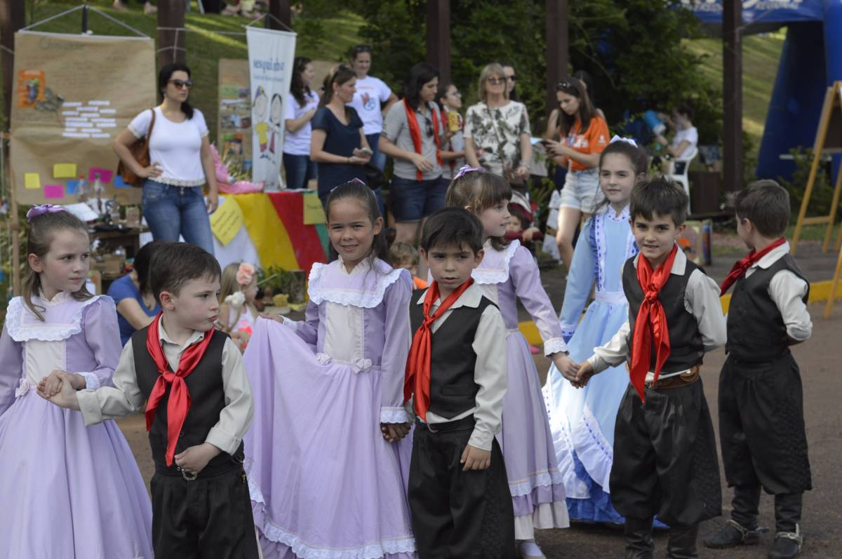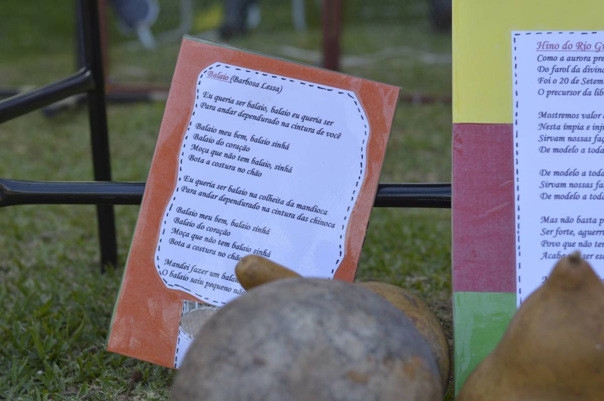 O domingo também foi importante para alunos, professores e familiares envolvidos no projeto, com a socialização das pesquisas e troca de conhecimentos sobre folclore e cultura gaúcha. Nesse sentido, houve mostra de trabalhos da Educação Infantil, com ilustrações, artes plásticas e instalações; cabine radiofônica à disposição dos Anos Iniciais; e ainda, distribuição gratuita do Dicionário de Falares do Gaúcho, produção coletiva dos Anos Finais do Ensino Fundamental, com vocábulos e expressões idiomáticas gaúchas.