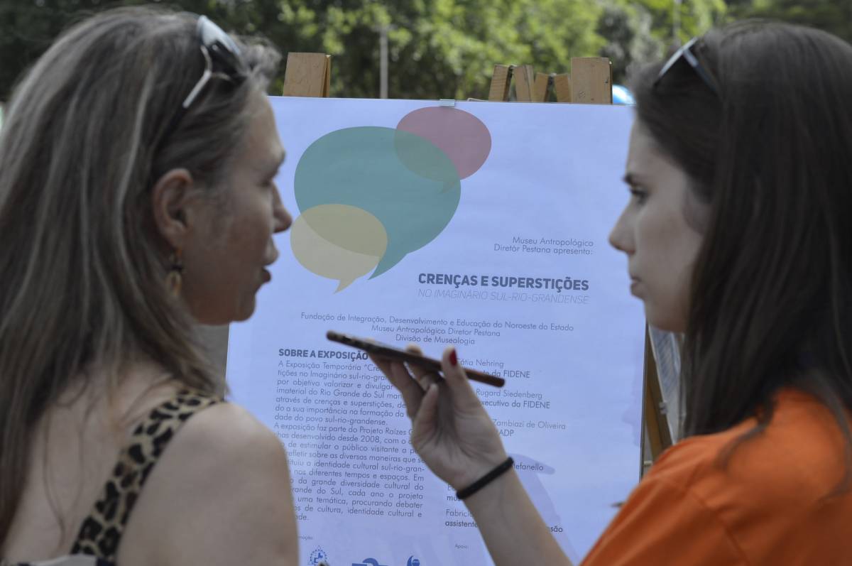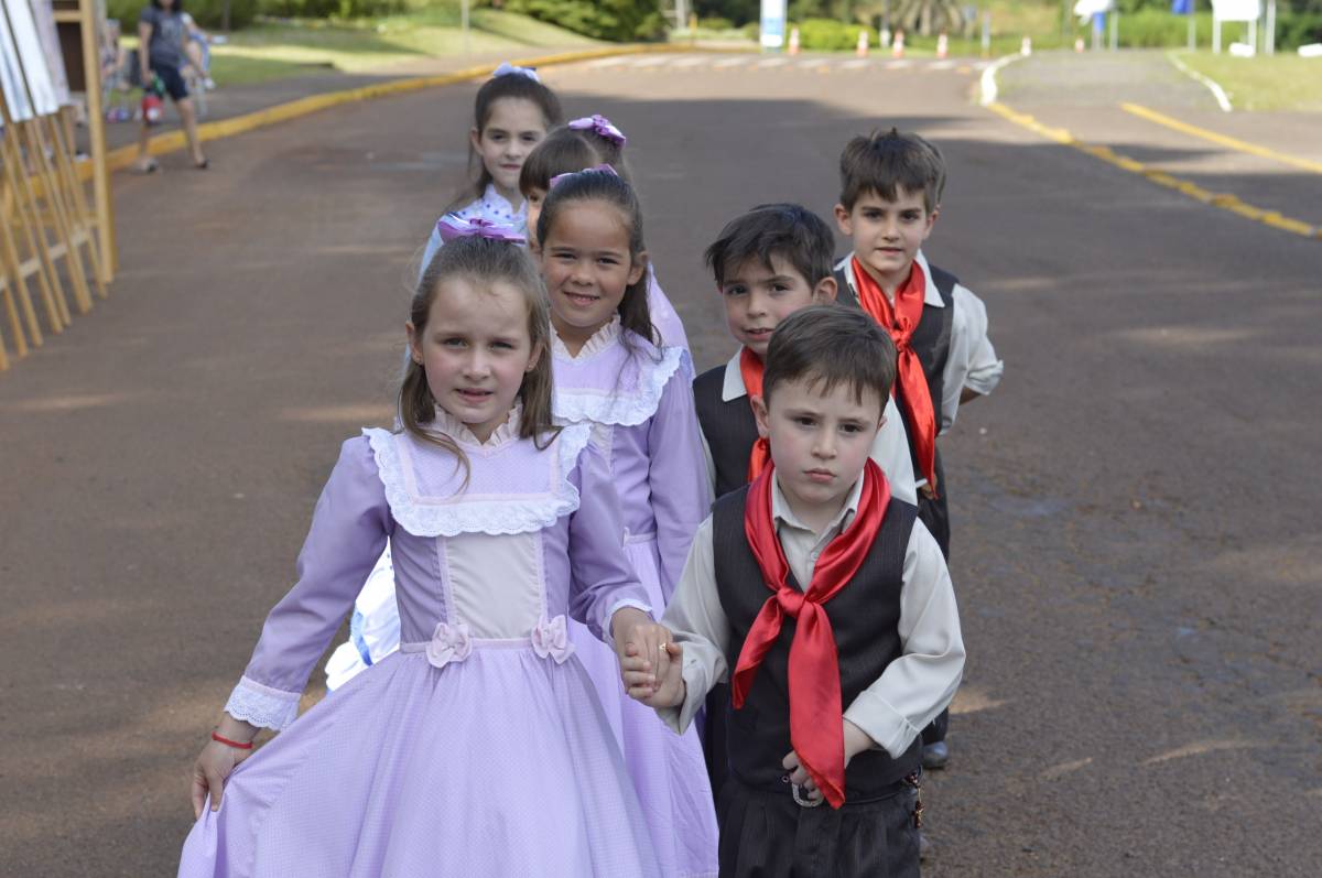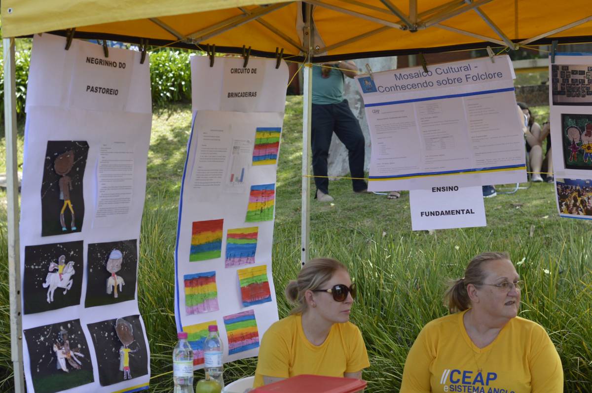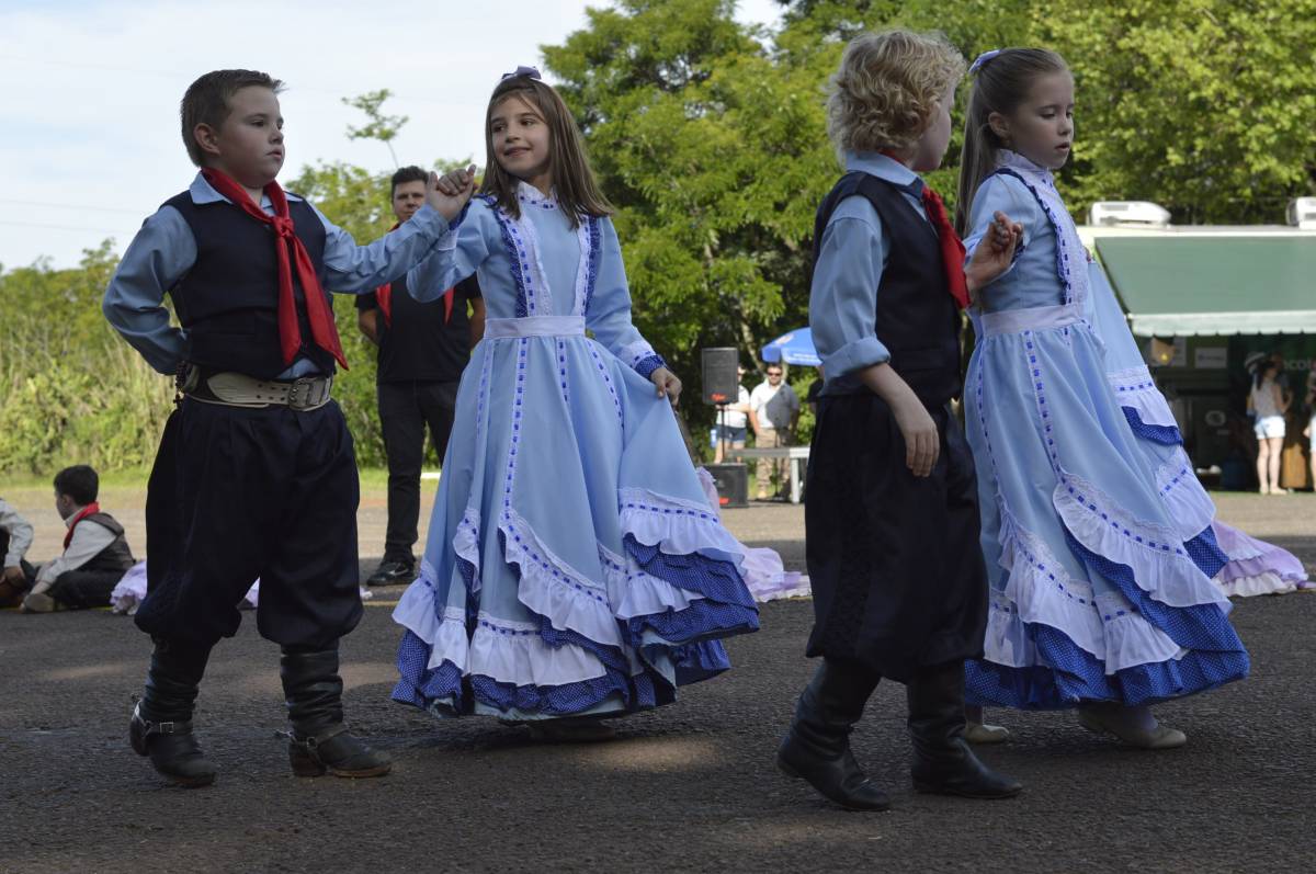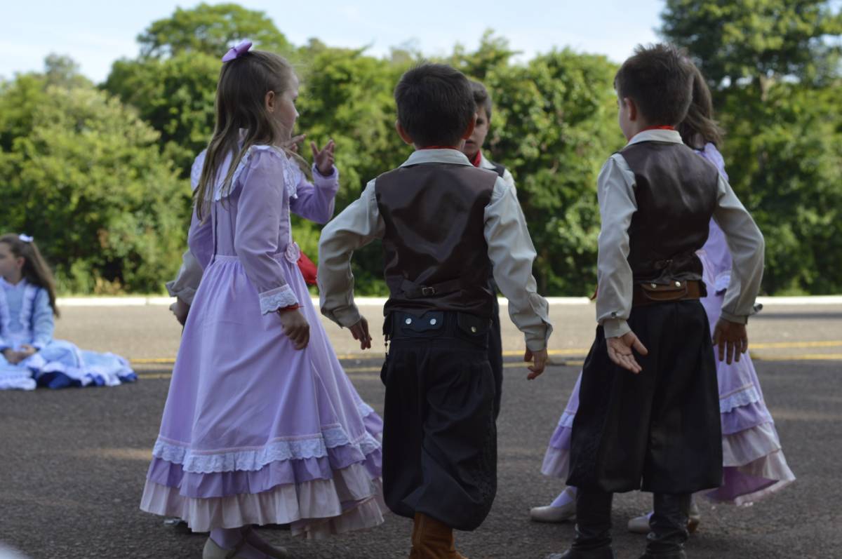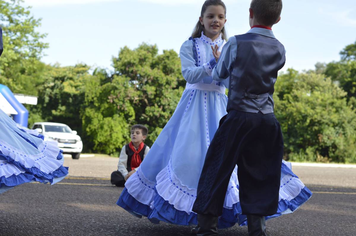 O domingo também foi importante para alunos, professores e familiares envolvidos no projeto, com a socialização das pesquisas e troca de conhecimentos sobre folclore e cultura gaúcha. Nesse sentido, houve mostra de trabalhos da Educação Infantil, com ilustrações, artes plásticas e instalações; cabine radiofônica à disposição dos Anos Iniciais; e ainda, distribuição gratuita do Dicionário de Falares do Gaúcho, produção coletiva dos Anos Finais do Ensino Fundamental, com vocábulos e expressões idiomáticas gaúchas.