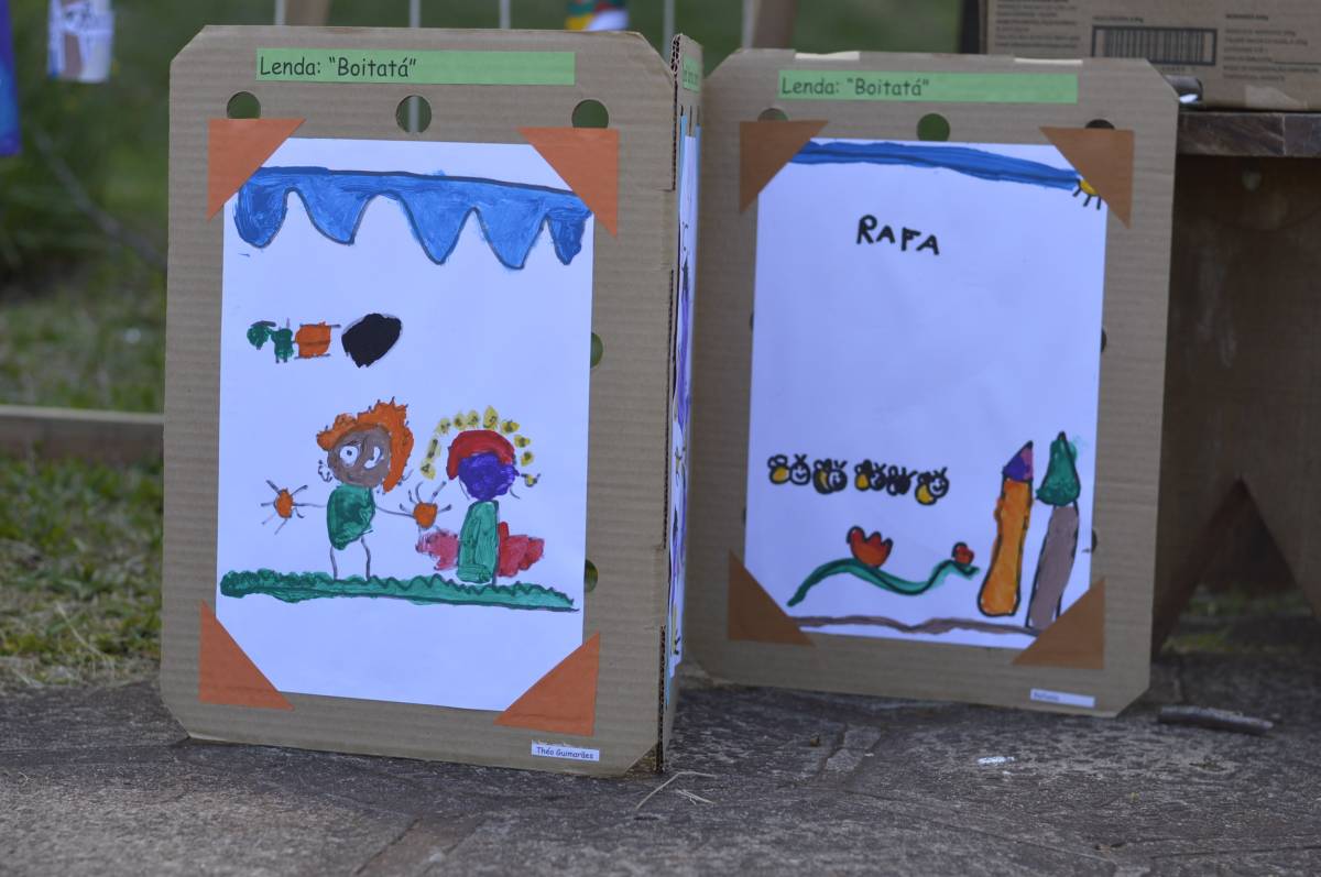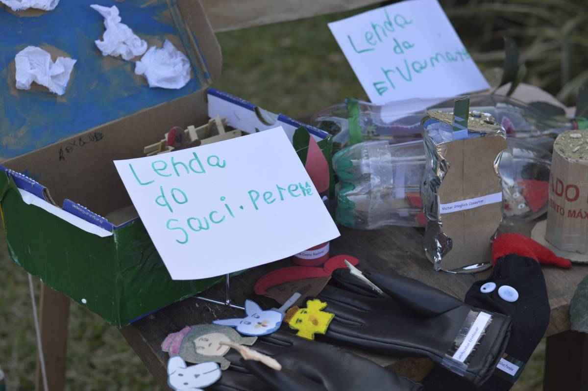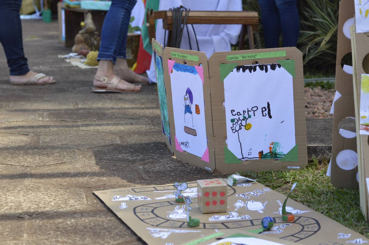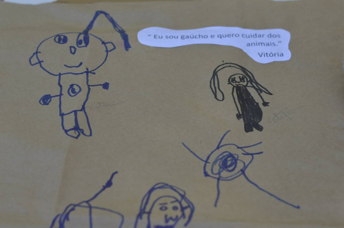 Educação Infantil (Artistas Mirins): produção de desenhos, artes plásticas e outras instalações que resgatassem artefatos, personagens e lendas do folclore gaúcho.