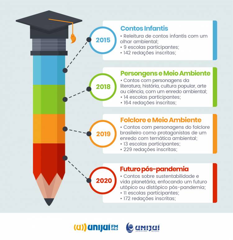 O Concurso Literário da Rádio Unijuí já é tradicional na região. Outras três edições foram realizadas em 2015, 2018 e 2019. Esse ano, devido à pandemia de Covid-19 e suspensão das aulas presenciais, a emissora optou por promover o concurso de forma online, para dar continuidade à atividade e seguir fomentando a criatividade, cidadania e consciência ambiental entre os alunos.