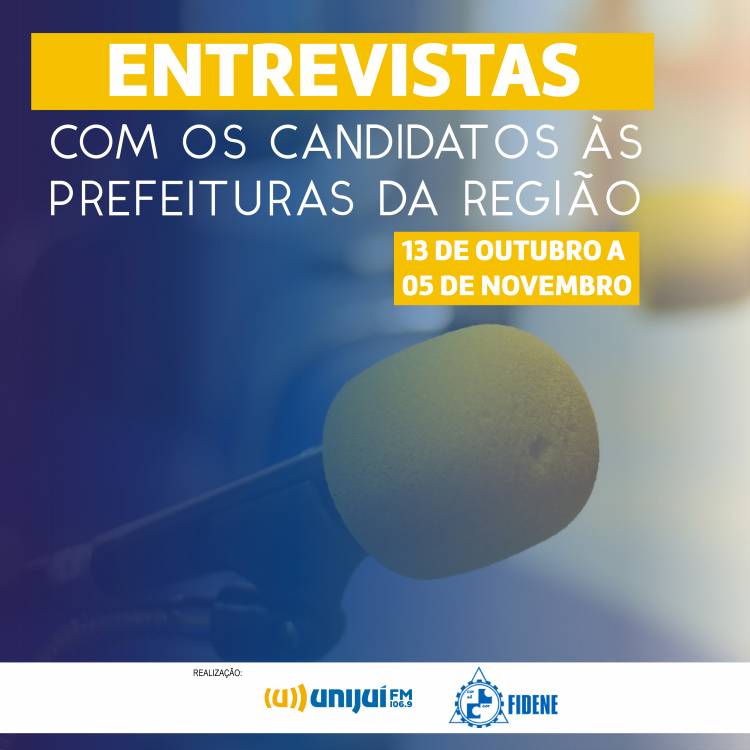 Com seu caráter educativo e de veículo propulsor da democracia, a Unijuí FM está promovendo, desde o dia 13 de outubro, entrevistas com os candidatos à prefeitura de cada um dos municípios em que a Unijuí possui um de seus campi: Três Passos, Panambi, Santa Rosa e Ijuí.