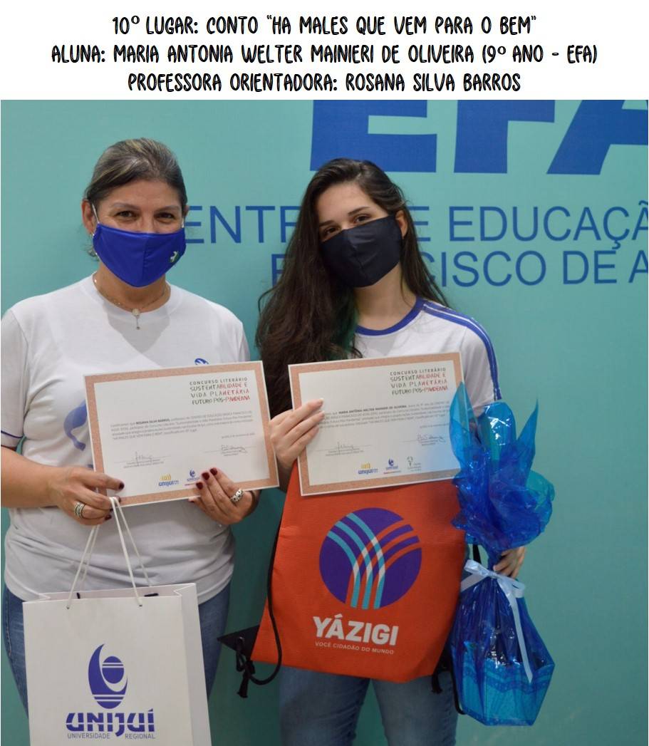Nesta terça-feira, 1° de dezembro, a UNIJUÍ FM encerrou as visitas de entrega da premiação do Concurso Literário Online “Sustentabilidade e vida planetária: o futuro pós-pandemia”. Devido às medidas de prevenção à Covid-19, não houve a tradicional cerimônia de premiação no Salão de Atos da UNIJUÍ. Os prêmios foram entregues em visitas agendadas às escolas vencedoras, com a participação do estudante, professor e representante da equipe diretiva, seguindo os protocolos de segurança, higiene e distanciamento.