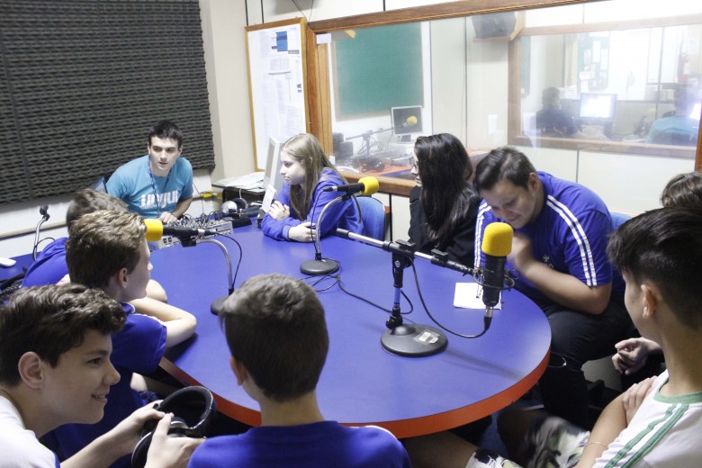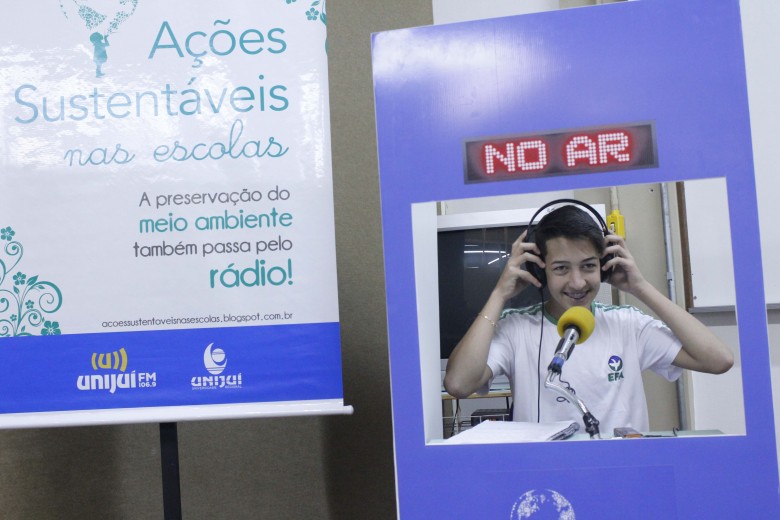 Estudantes podem experimentar a comunicação e oratória, gravando conteúdos para o rádio, no projeto Ações Sustentáveis nas Escolas de Ijuí (FOTO: 2017)