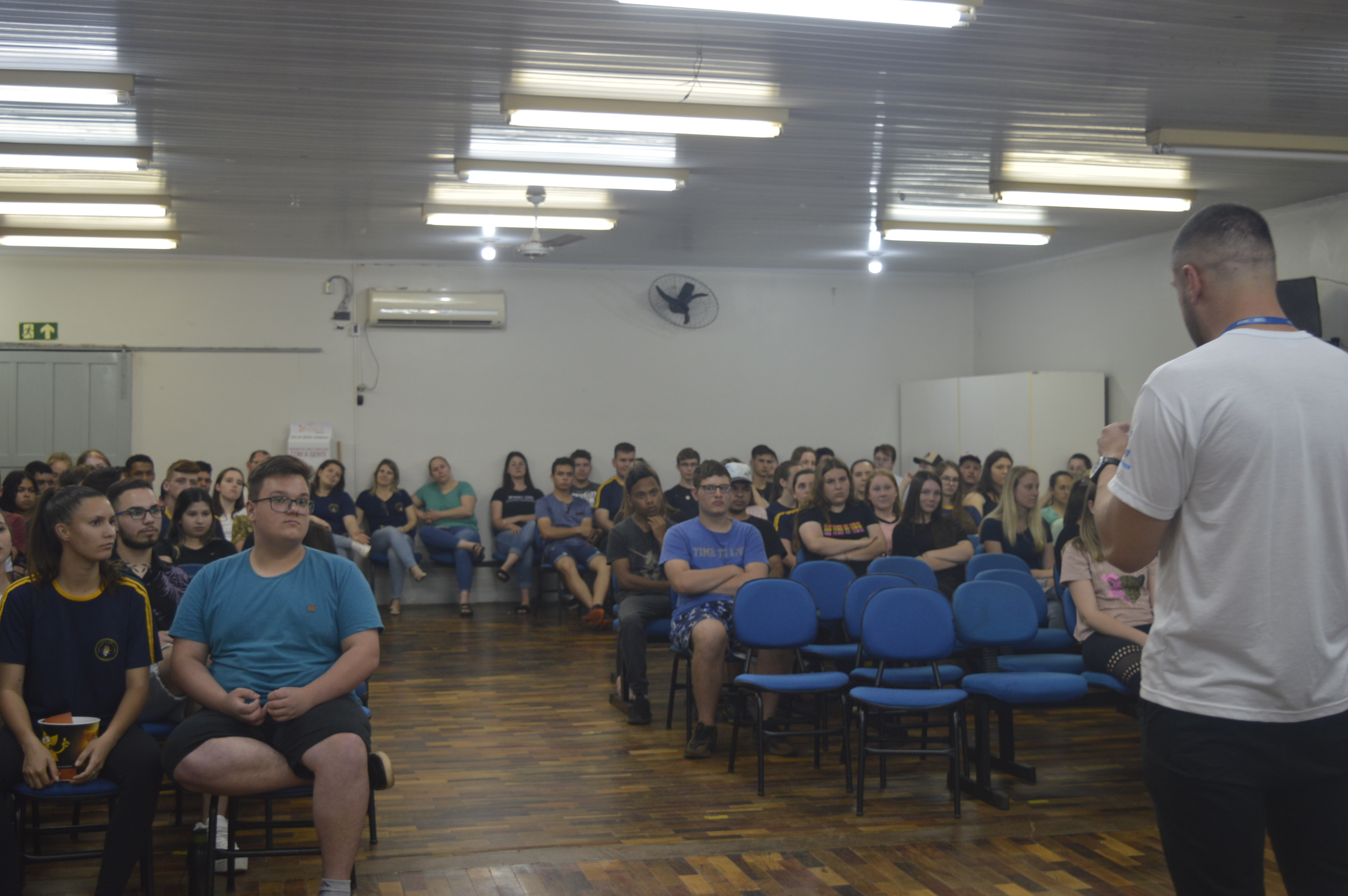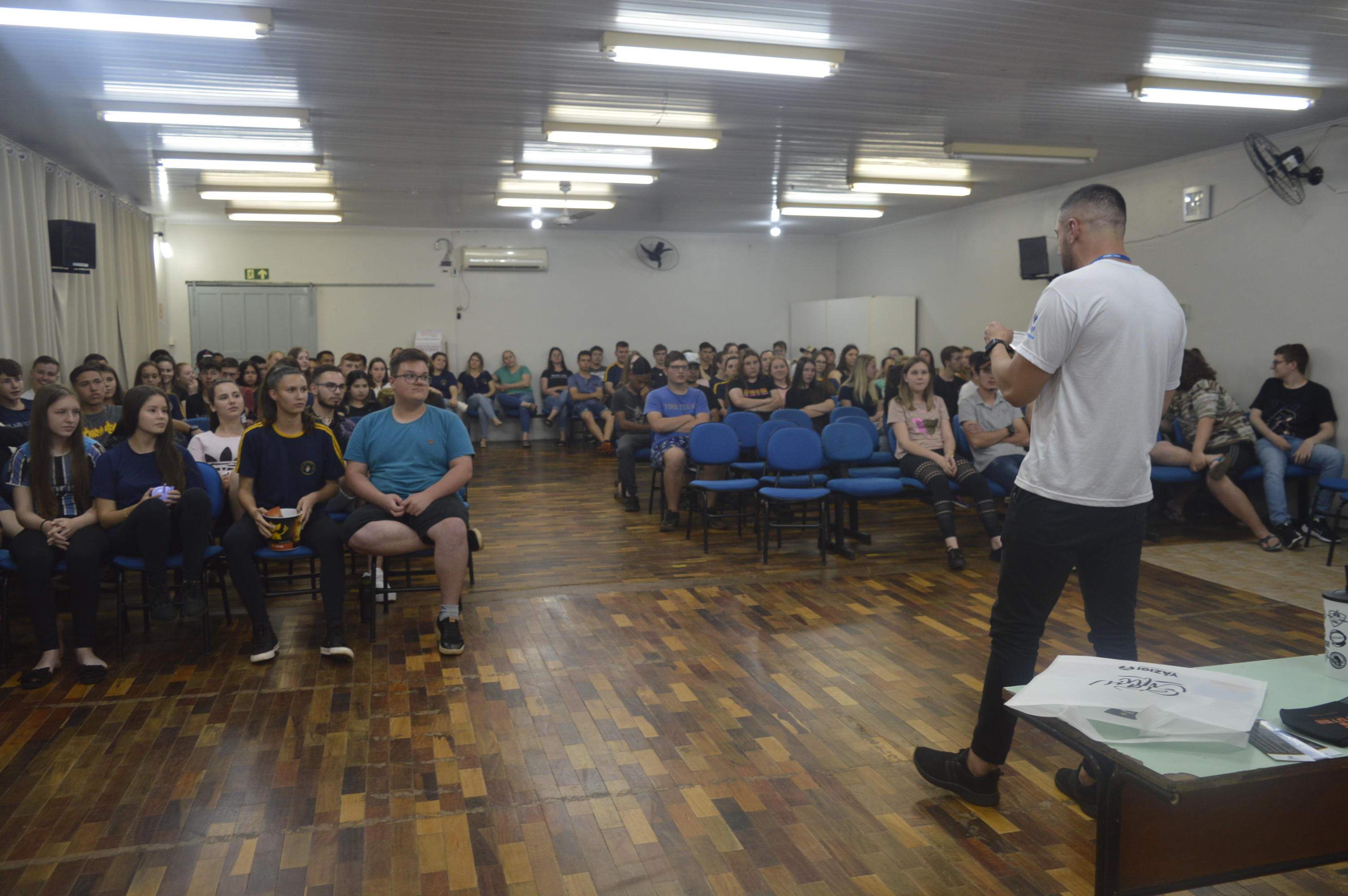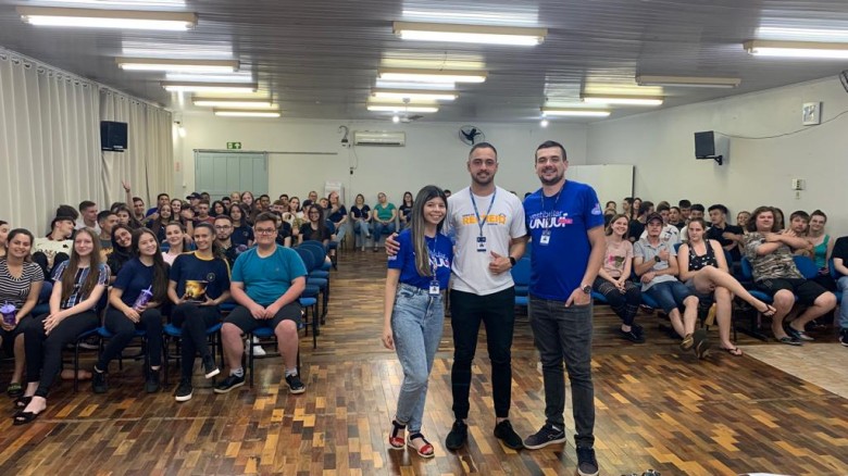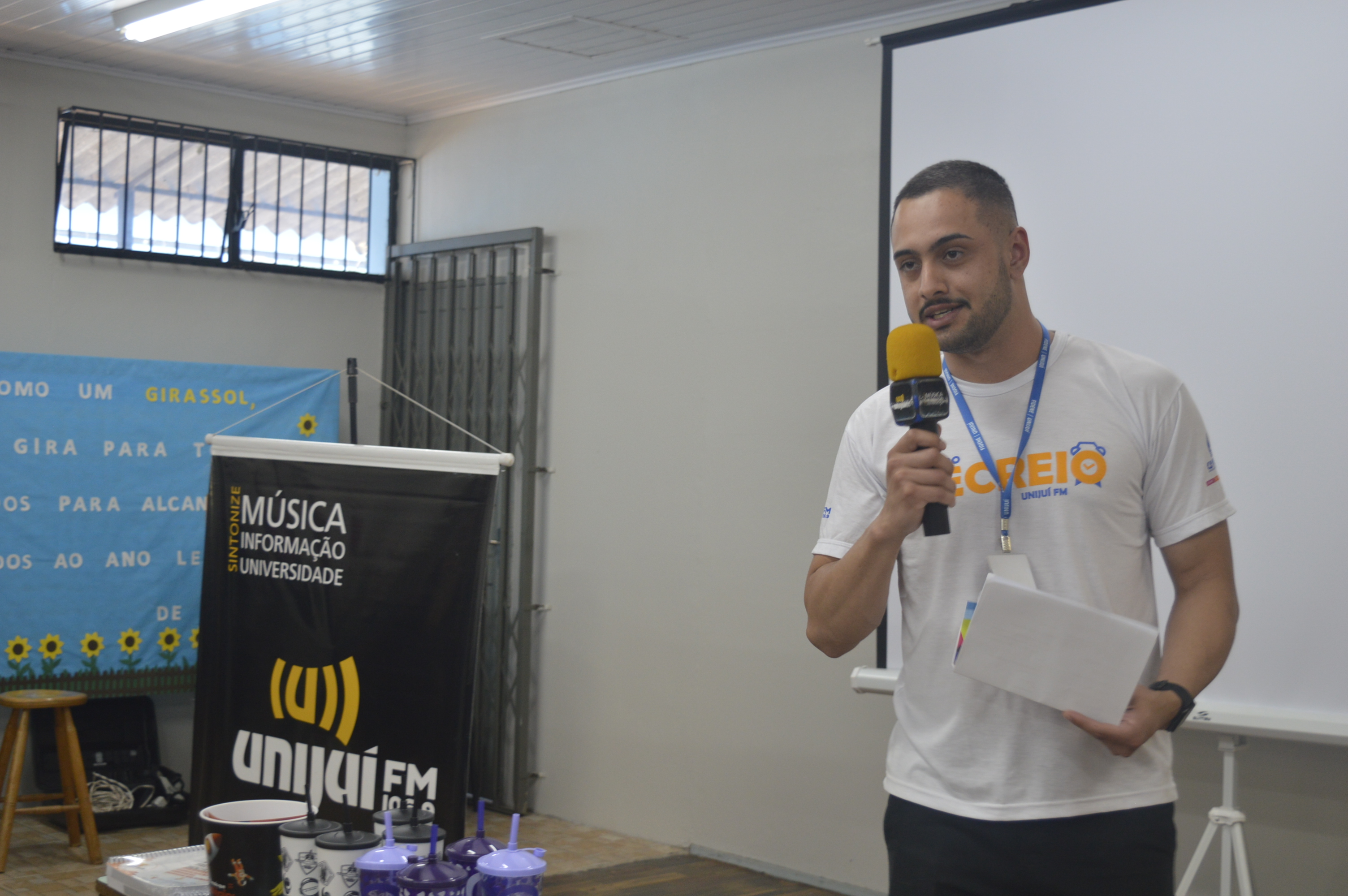 A Rádio Uniijuí FM esteve ontem, quarta-feira (26) no colégio Estadual Comendador Soares de Barros em Ajuricaba para realizar o tradicional projeto Hora do Recreio, com brindes e atividades de perguntas e respostas com temática geral para os alunos do ensino médio.
