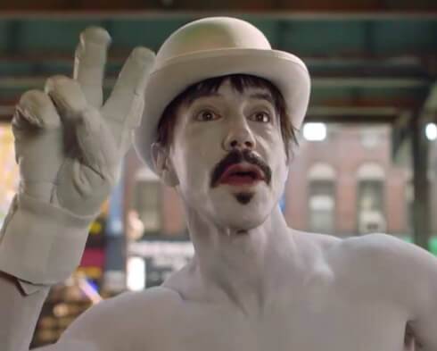 Como a gente tinha adiantado por aqui com fotos de bastidores, o vídeo traz o vocalista Anthony Kiedis em um look pra lá de bizarro andando pelas ruas até chegar a uma competição de dança ao melhor estilo disco music.
