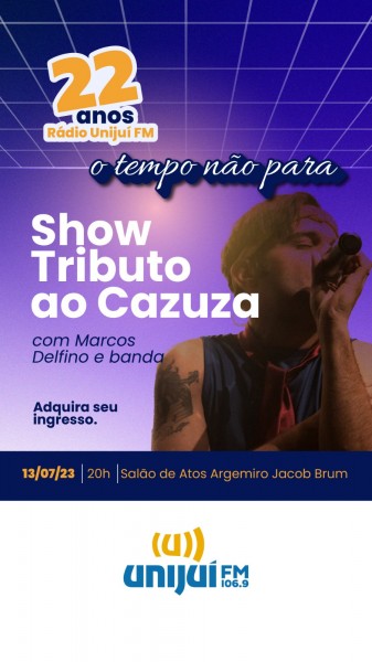 No dia 13 de Julho, dia do Rock, a Unijuí FM promove, no Salão de Atos da Unijuí, às 20h o show Tributo a Cazuza, com Marcos Delfino e banda, direto de Porto Alegre. A apresentação rica em detalhes para reviver o “estilo” Cazuza no palco, traz os grandes clássicos do ícone da música brasileira.
