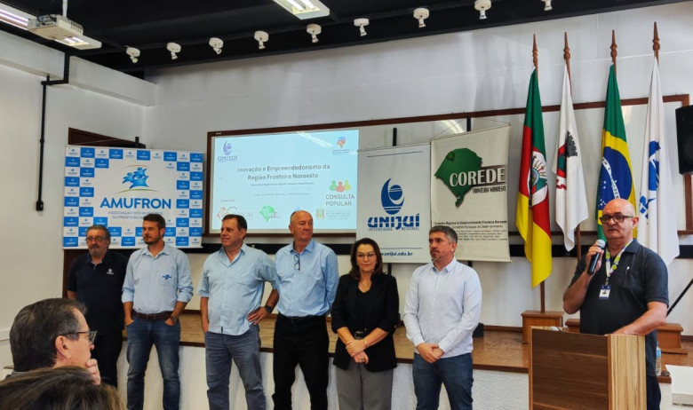 A Unijuí realizou, na manhã desta terça-feira, 16 de dezembro, o evento de lançamento do Projeto de Inovação e Empreendedorismo da Região Fronteira Noroeste. A apresentação ocorreu no Mini Auditório B105, no campus Santa Rosa, e reuniu autoridades, gestores públicos e lideranças regionais ligadas ao desenvolvimento, à inovação e ao empreendedorismo. Dentre as autoridades estiveram presentes a presidente do Corede Fronteira Noroeste, Vanice de Matos; o presidente do Consórcio Público Fronteira Noroeste (Cofron) e representante da Amufron, Jones Cunha; o Reitor da Unijuí, professor Dieter Rugard Siedenberg; e o vice-prefeito de Santa Rosa, Aldemir Ulrich, representando a Prefeitura Municipal, além de gestores municipais e regionais. Durante o evento, o professor Pedro Luís Büttenbender, supervisor do projeto, destacou a importância do momento para a região. “O que vivemos nesta manhã se soma a um conjunto de ações já empreendidas na região Fronteira Noroeste em termos de inovação, empreendedorismo e fomento ao desenvolvimento. Trata-se de um processo de aglutinação, visando à construção de uma agenda regional voltada a essa temática”, afirmou. O professor também ressaltou que a priorização do projeto ocorreu por meio da Consulta Popular. “É fundamental mostrar para a população que votar nessa temática vale a pena”, completou. A presidente do Corede Fronteira Noroeste, Vanice de Matos, enfatizou o caráter estratégico da iniciativa. “Este é um momento muito importante para a nossa região, pois essa data poderá ser um diferencial para todos os municípios. O que estamos oferecendo hoje é uma oportunidade igualitária, construída de forma coletiva, para que o projeto fosse priorizado”, destacou. Já o presidente do Cofron e representante da Amufron, Jones Cunha, explicou o papel das entidades no andamento do projeto, destacando a atuação do consórcio e da associação na articulação regional e no apoio à execução da iniciativa. O reitor da Unijuí, professor Dieter Rugard Siedenberg, abordou a relação entre universidade, inovação, empreendedorismo e desenvolvimento regional. Segundo ele, a cultura do empreendedorismo pode e deve ser formada dentro da universidade. “A universidade é um espaço fundamental para fomentar essa cultura. Precisamos capacitar pessoas para que consigam olhar para os dados, para os elementos disponíveis, e façam análises diferentes, capazes de gerar inovação e desenvolvimento”, afirmou. O Projeto de Inovação e Empreendedorismo da Região Fronteira Noroeste será executado pela Fidene/Unijuí ao longo de 15 meses e tem como objetivo elaborar o Planejamento Estratégico do ecossistema de inovação dos 20 municípios da região. A iniciativa prevê levantamentos in loco, diagnóstico do ambiente de inovação